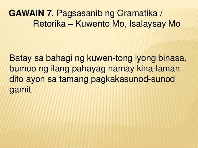 Hinihikayat namin ang mga guro at ibang nasa larangan ng edukasyon na mag-email ng kanilang puna at mungkahi sa. Katangian ng ama Bahagi Pangyayaring nagpapatunay F. Sa isang iglap ang kanina pang inip na inip na mga bata ay dumagsa sa yaman.