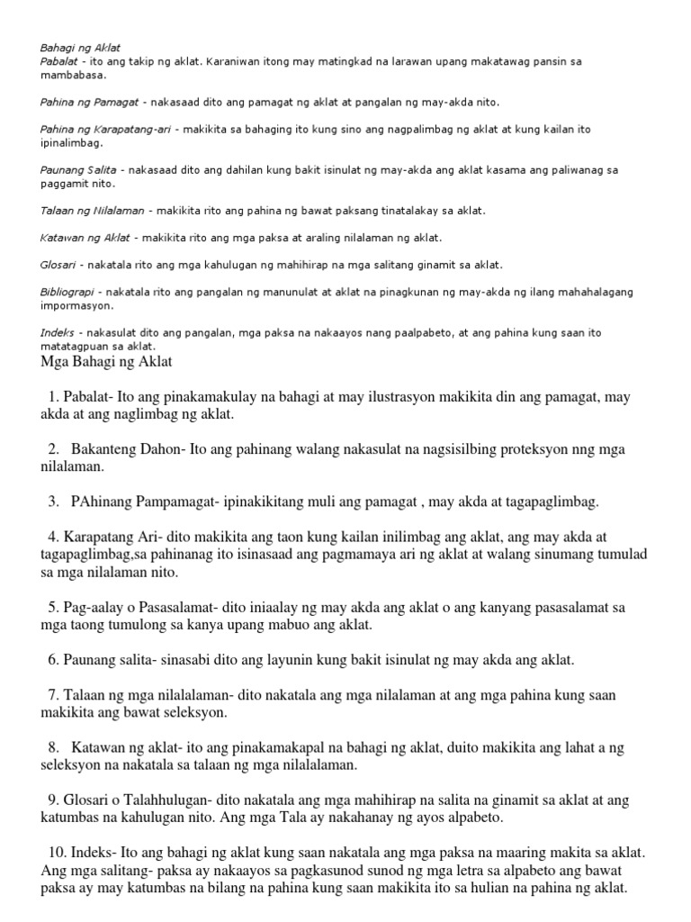 Nakalista sa ibaba ang ibat-ibang bahagi ng aklat. You may print and distribute this document to others but please do not do so for profit. Learn vocabulary terms and more with flashcards games and other study tools.