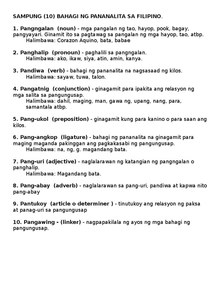 8 Antas ng Pananalita part of speech ay isang paksa sa asignaturang Filipino. Walong bahagi ng pangungusap - OurClipart pin walong bahagi ng pangungusap 9. Contextual translation of 8 bahagi ng pananalita depinisyon tagalog into English.
