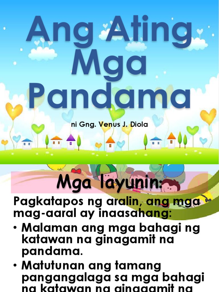 Ang ORGANONG PANDAMA o Sense Organ ay mga bahagi ng ating katawan na siyang naghahatid mensahe sa ating utak. This set of FREE Filipino Flashcards are about their body parts or bahagi ng katawan in Filipino. Narito ipapakita ko sa iyo ang ilan sa mga aktibidad na ginagawa ko upang gumana sa pandama.